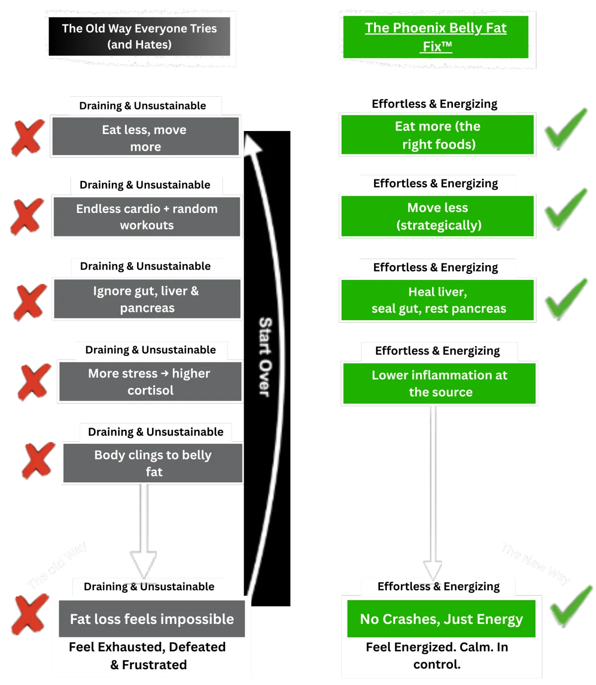 P.S. - The Phoenix Belly Fat Fix™ is a 10-day protocol (just 10 minutes per day) that resets your liver, gut, and pancreas—the three organs controlling whether your body stores fat or burns it.